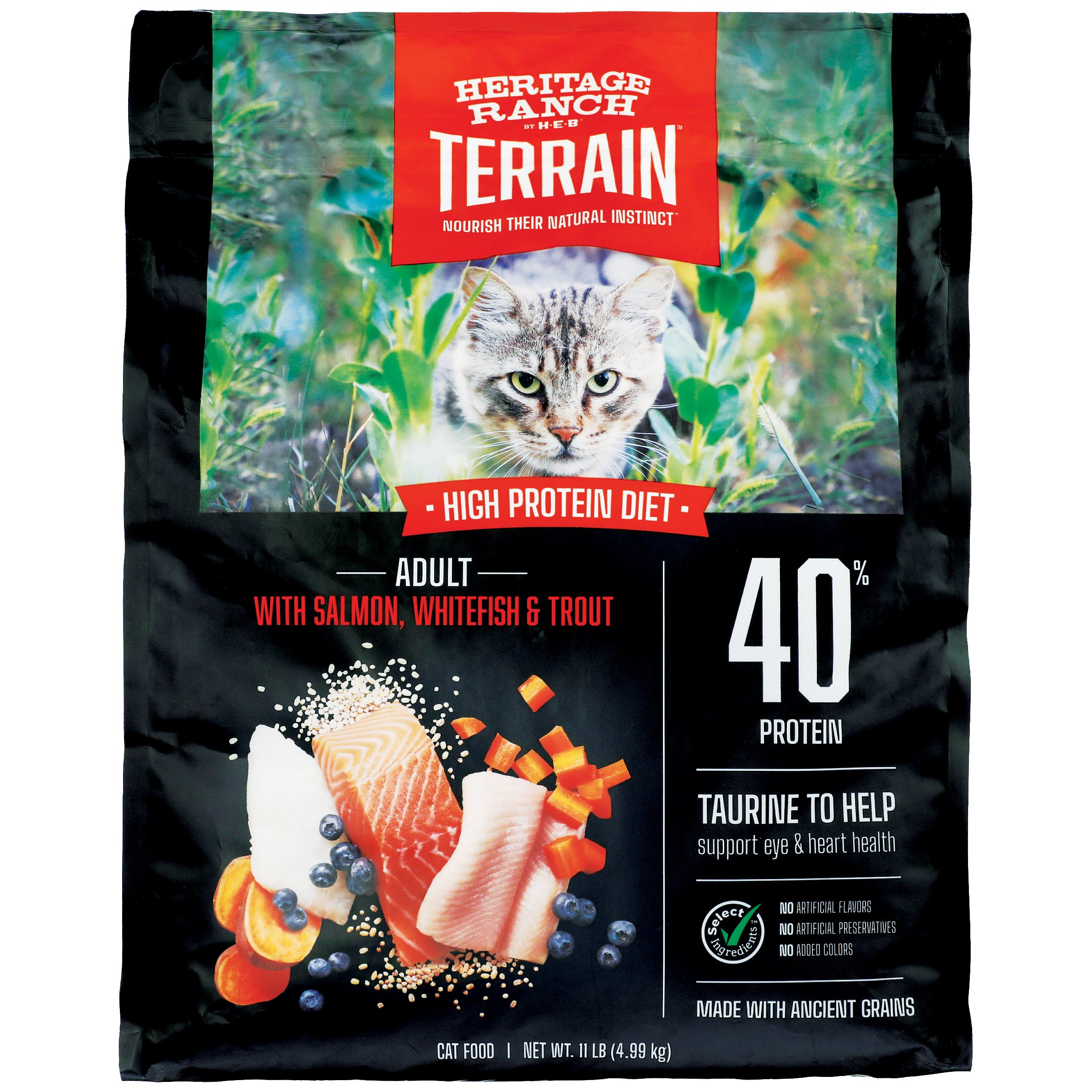 Heritage Ranch By H E B Terrain Adult High Protein With Salmon Whitefish Trout Dry Cat Food Shop Cats At H E B